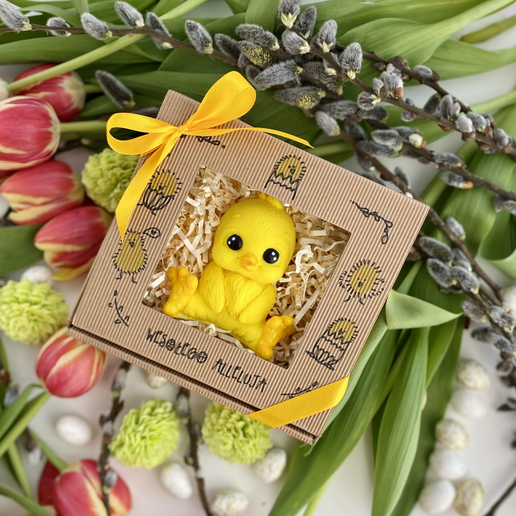 Ozdoba mydlana KURCZACZEK WIELKANOCNY jest wykonana ręcznie z pasją i dbałością o najmniejsze szczegóły. To mydlany promyk wiosny! Jego uroczy wygląd sprawia, że trudno się nie uśmiechnąć! Idealny jako słodki upominek lub wielkanocna niespodzianka – nic dziwnego, że stał się bestsellerem!