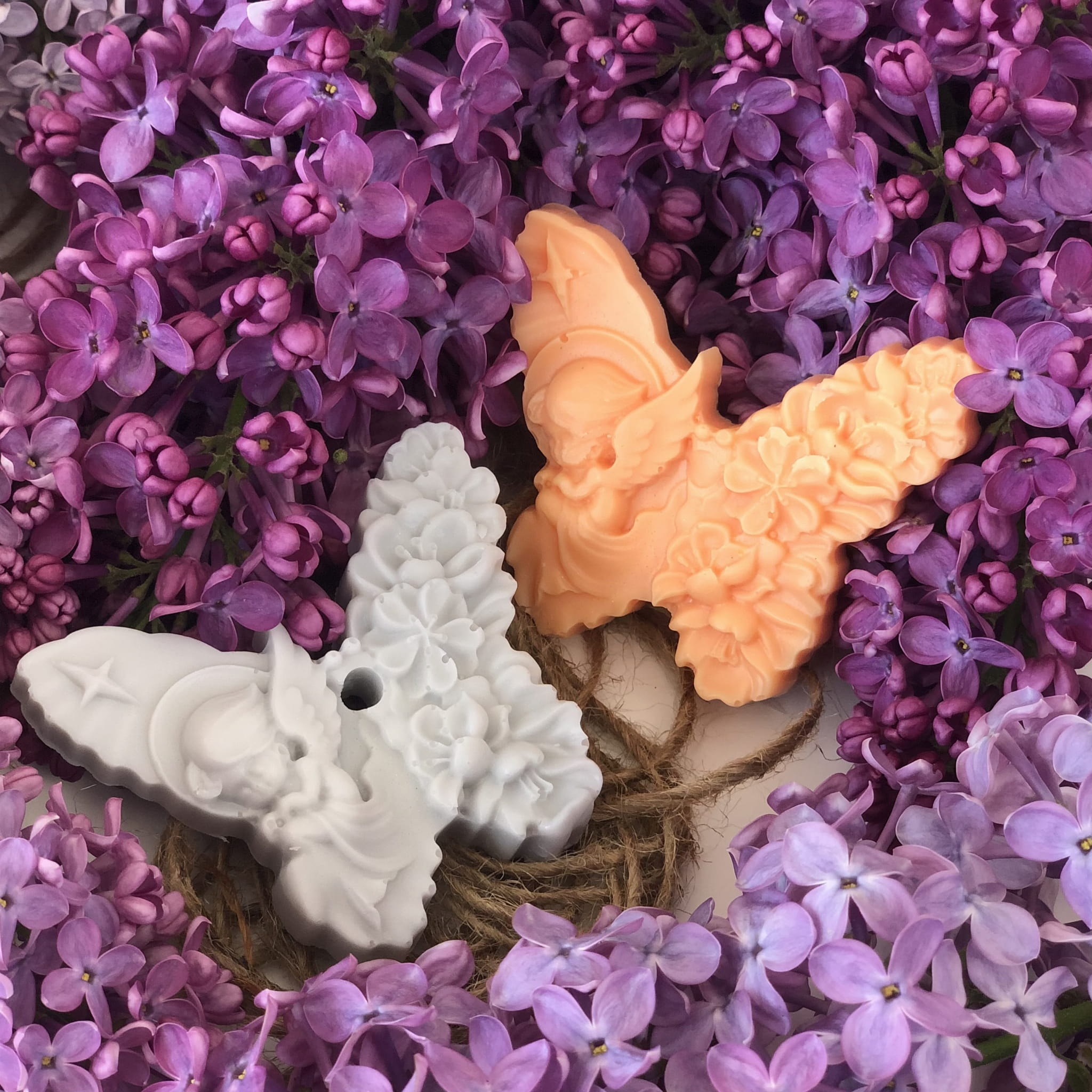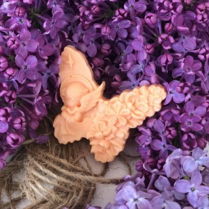 Ozdoba mydlana MOTYL Z ANIOŁKIEM jest wykonana ręcznie z pasją i dbałością o najmniejsze szczegóły. Będzie doskonałym prezentem z okazji Komunii, Chrztu czy Ślubu dla Twoich gości.