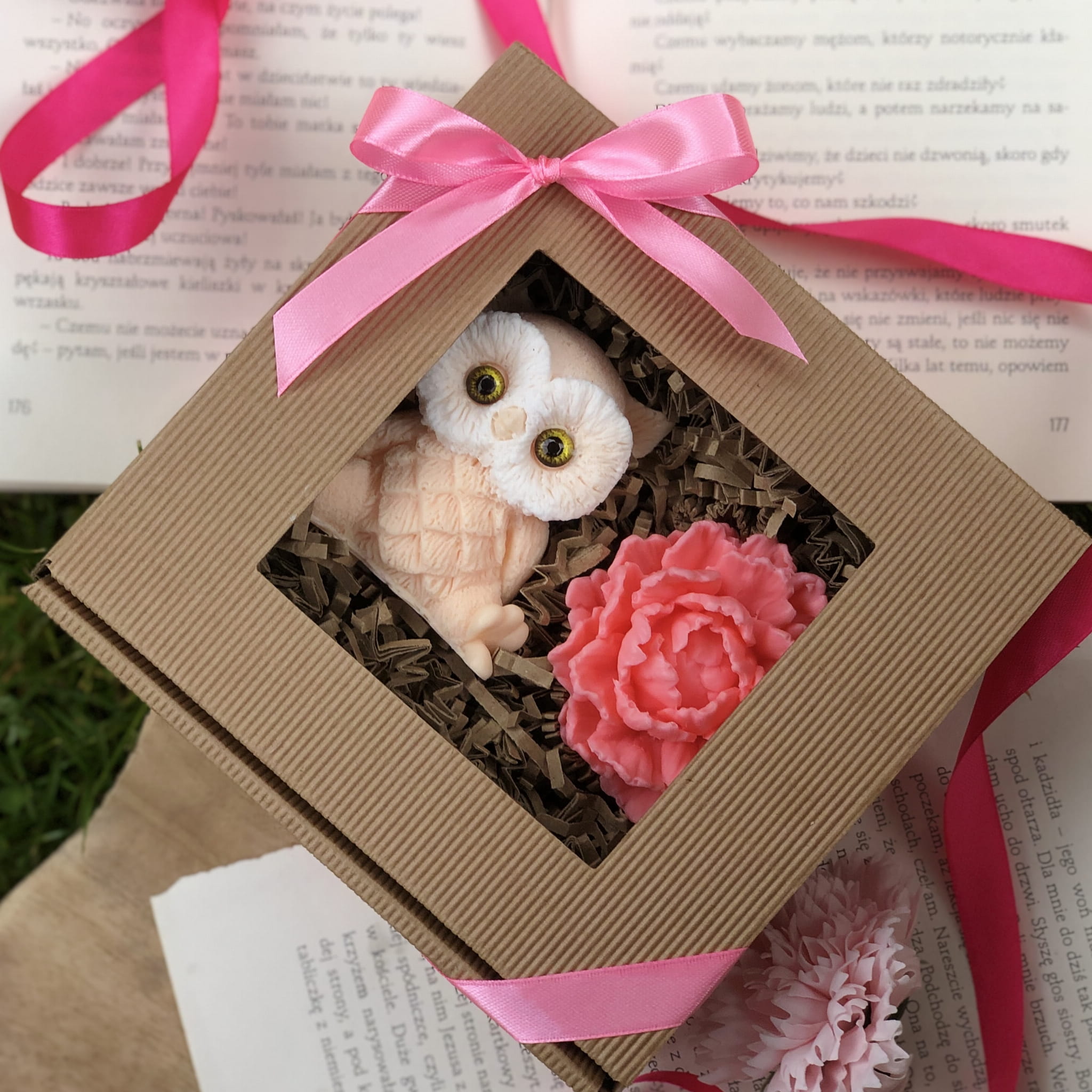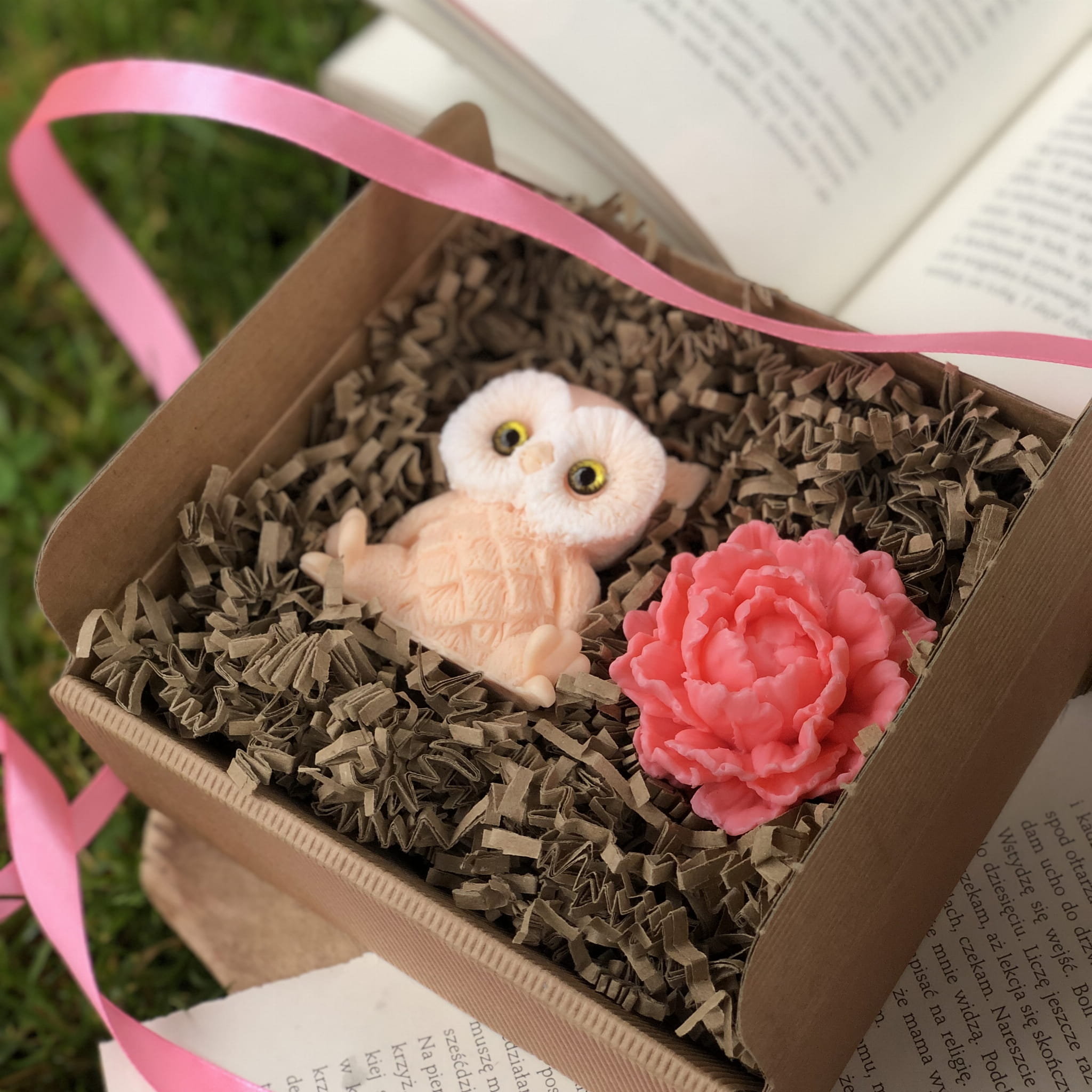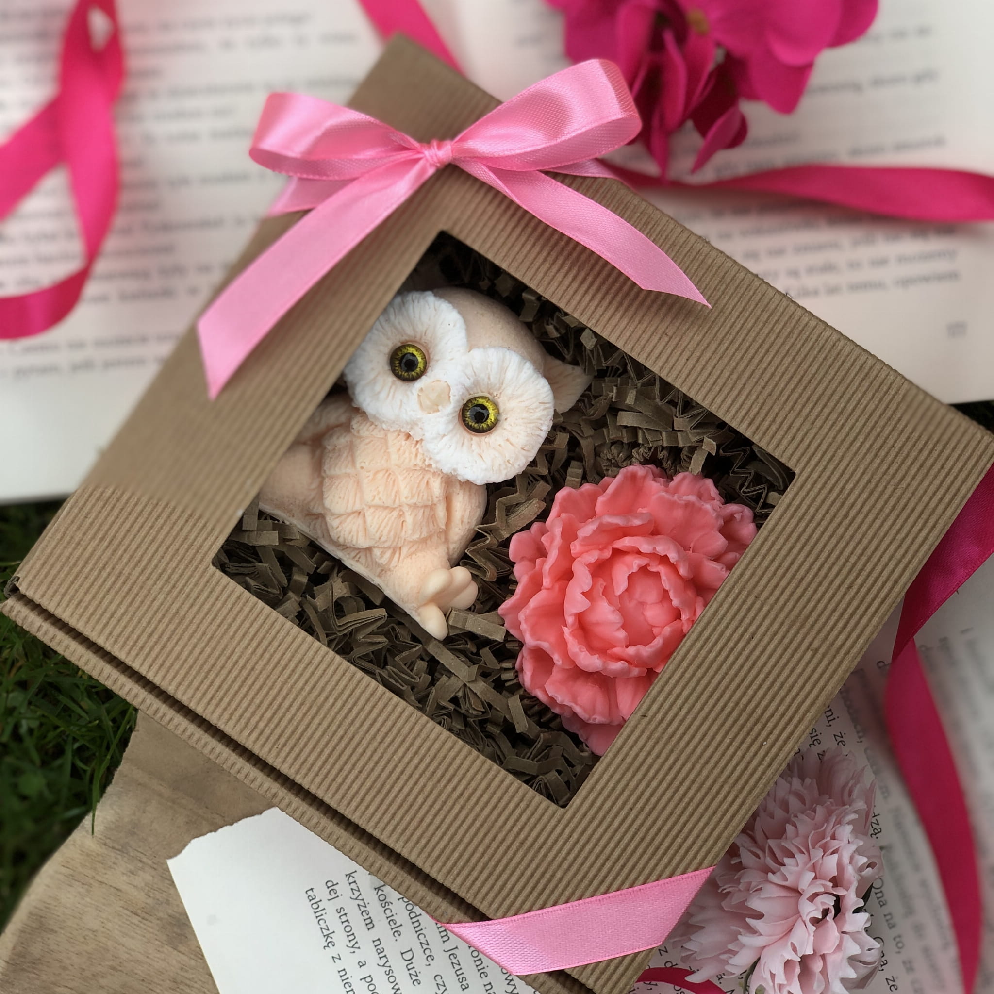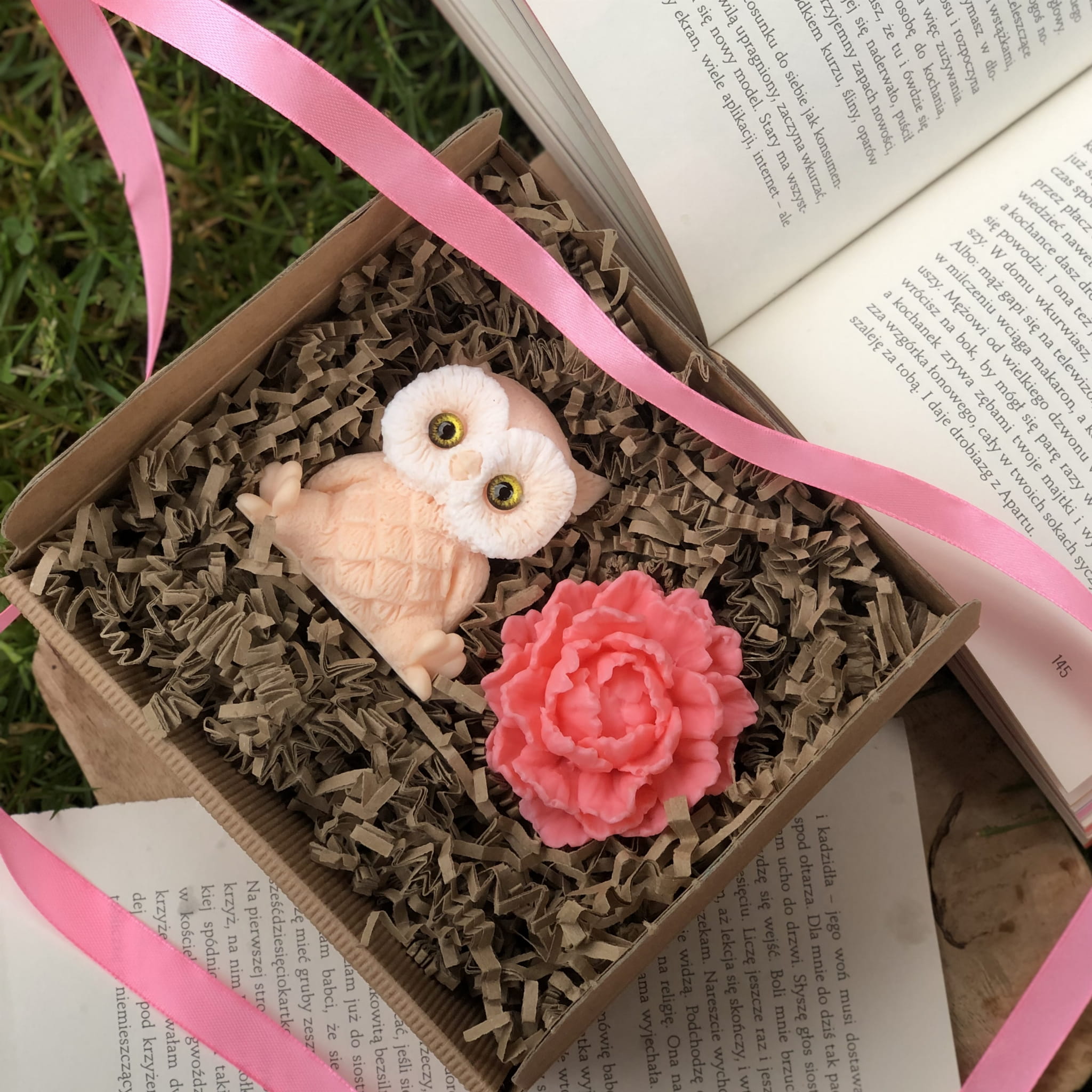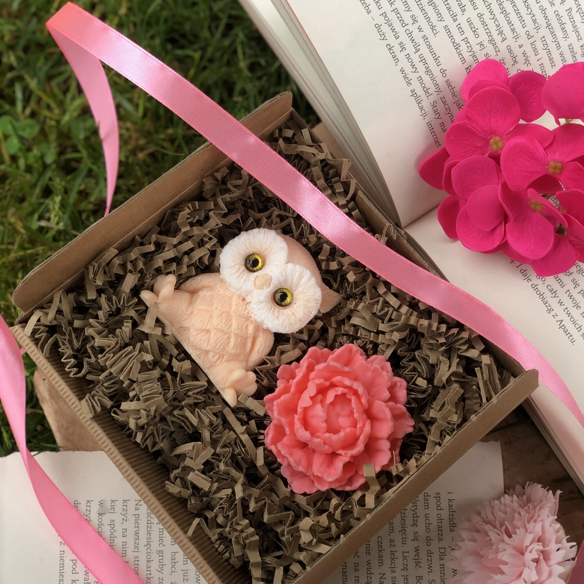 Mydlany Zestaw Sowa i Piwonia Ecru