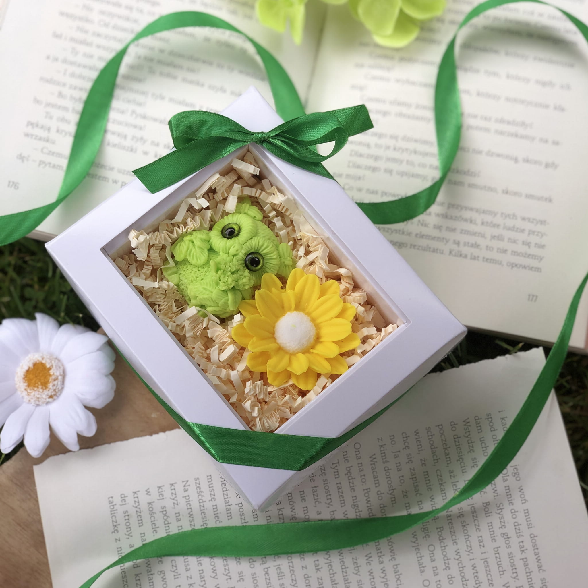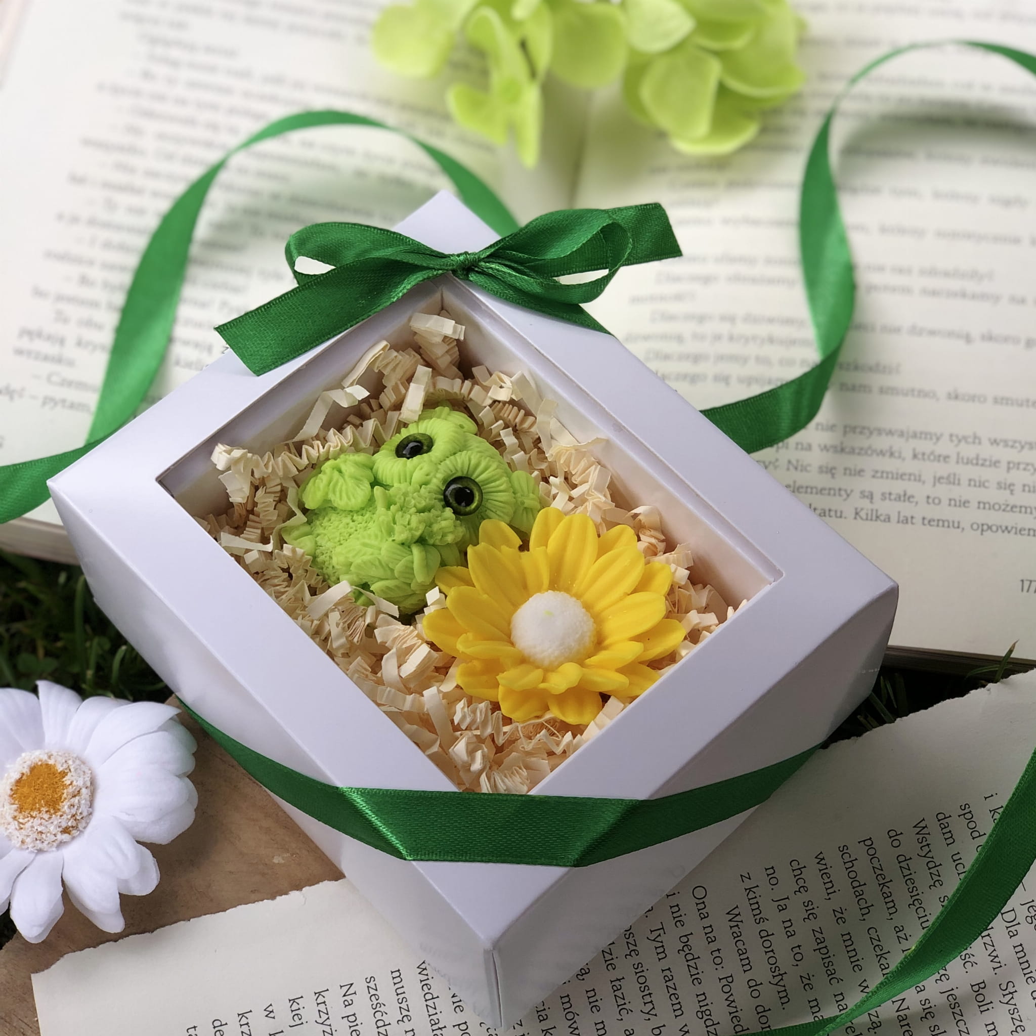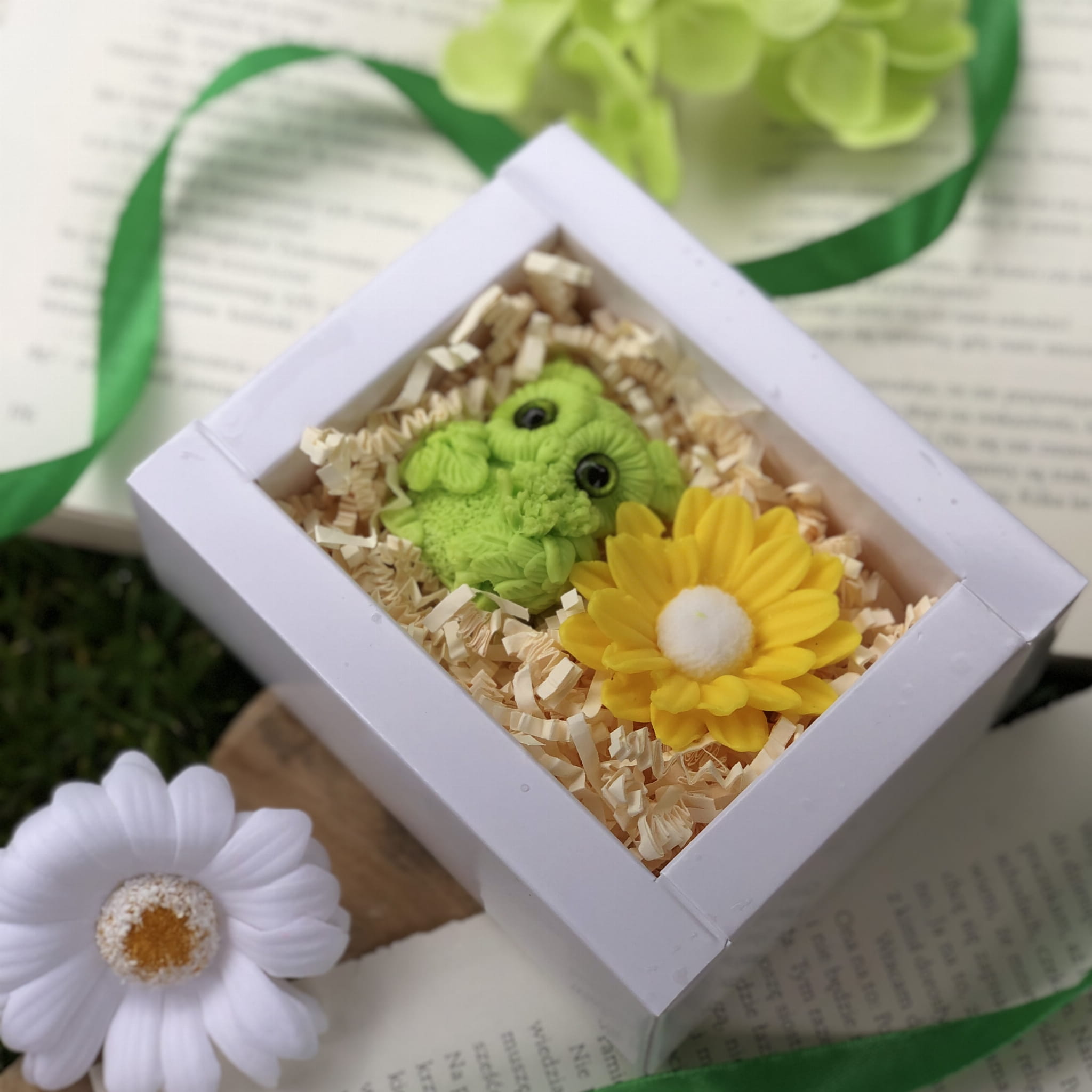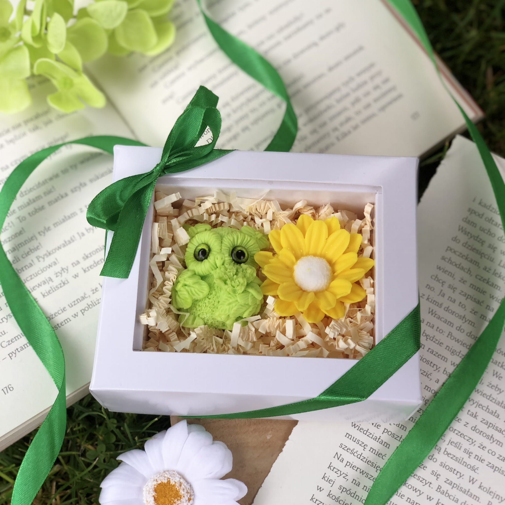 Całość zapakowana w eleganckie, białe pudełko z okienkiem i zieloną wstążką (12,5 x 10 cm) – gotowe, by wywołać uśmiech i wzruszenie od pierwszej chwili
