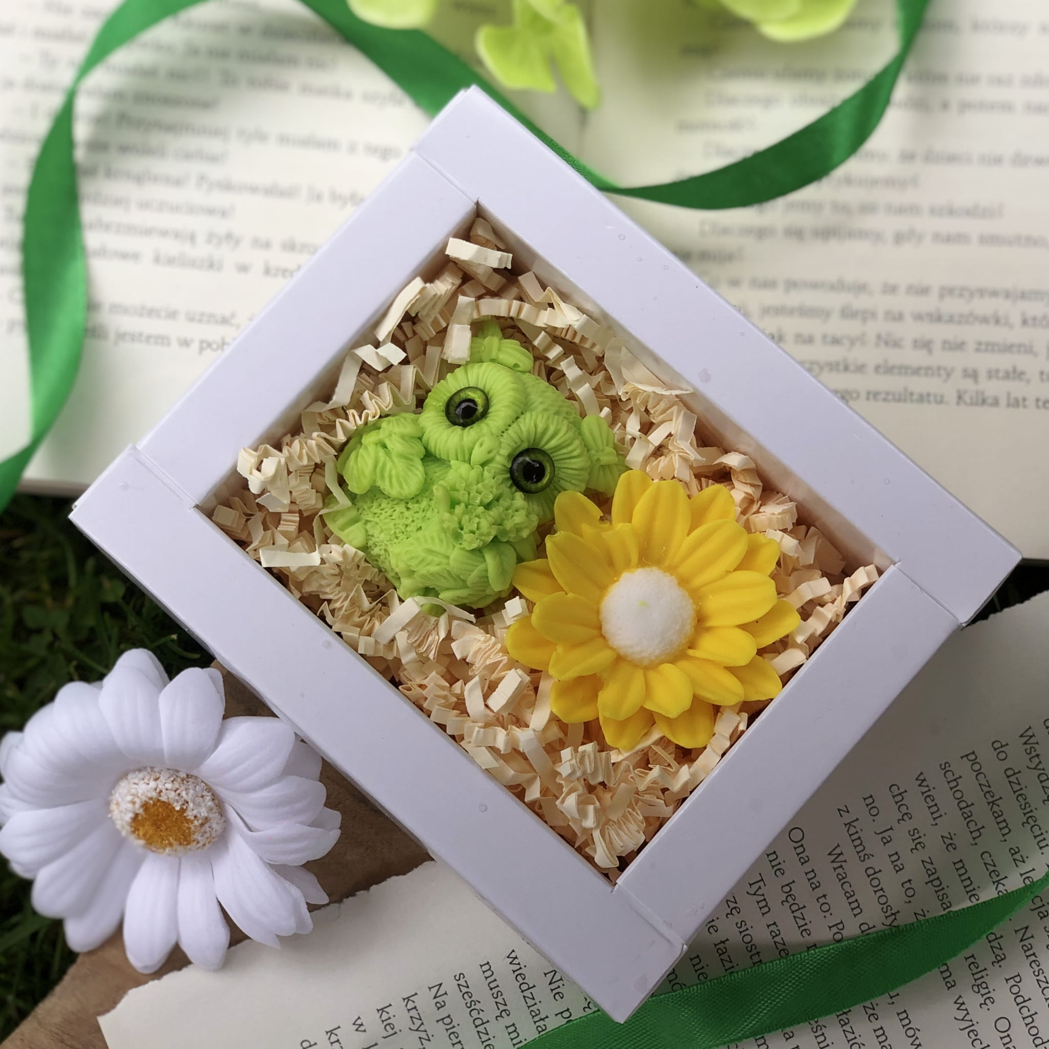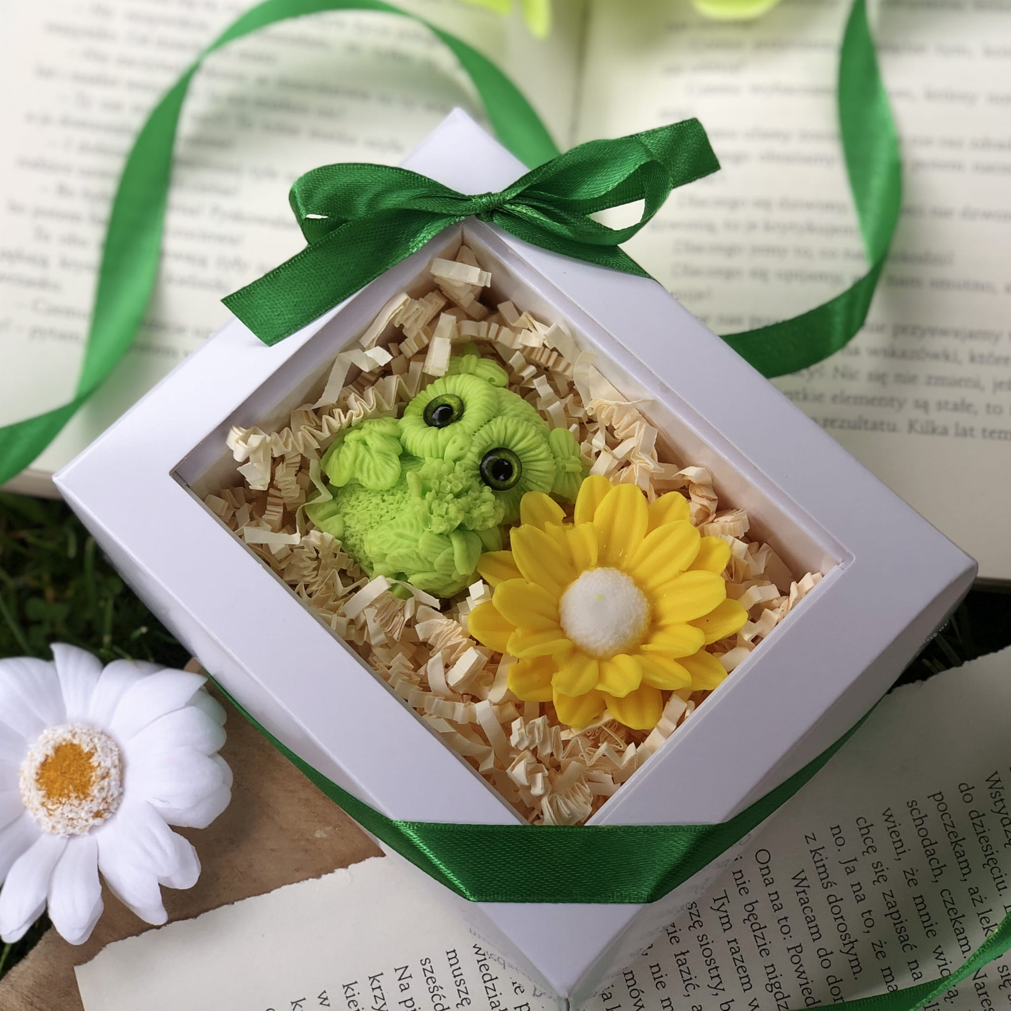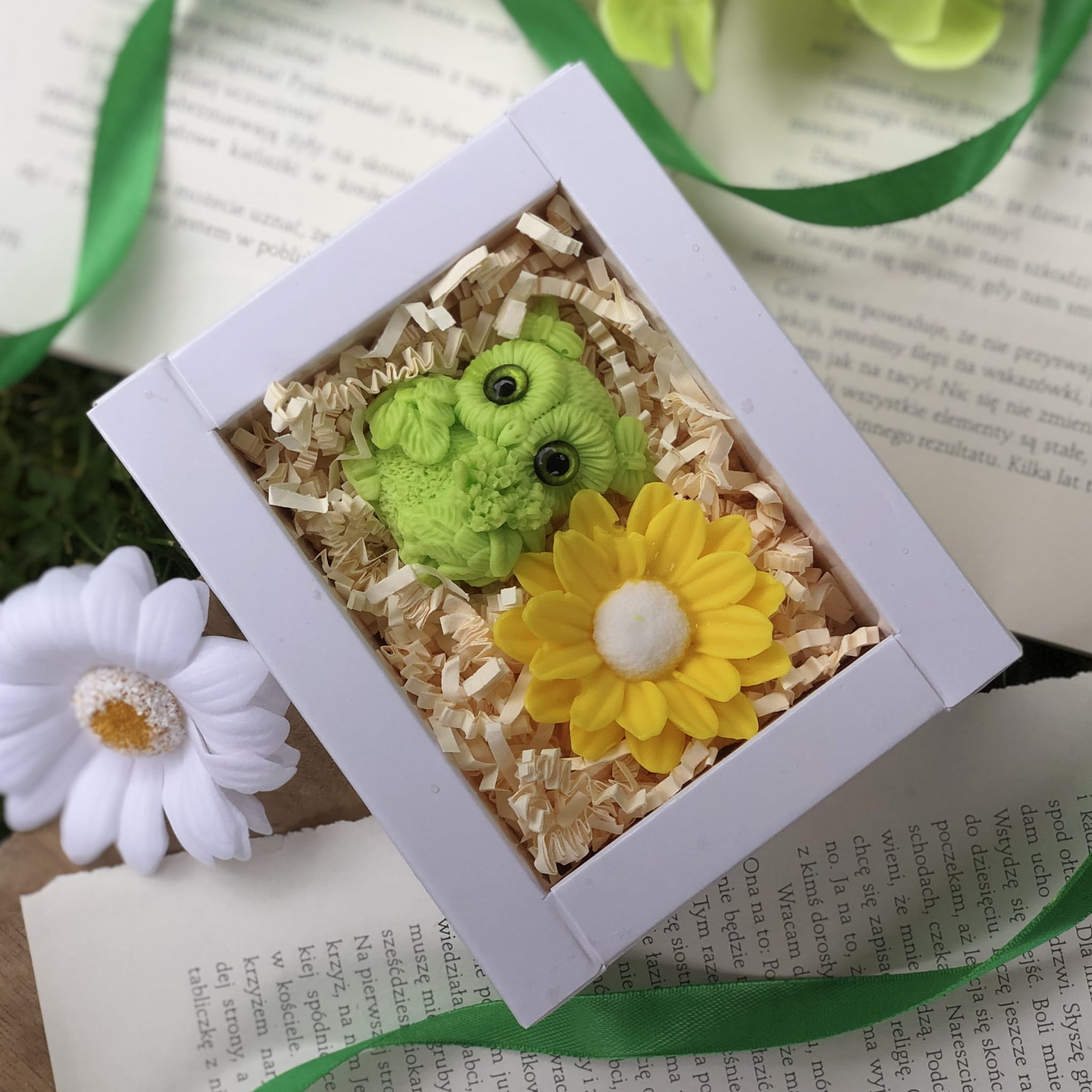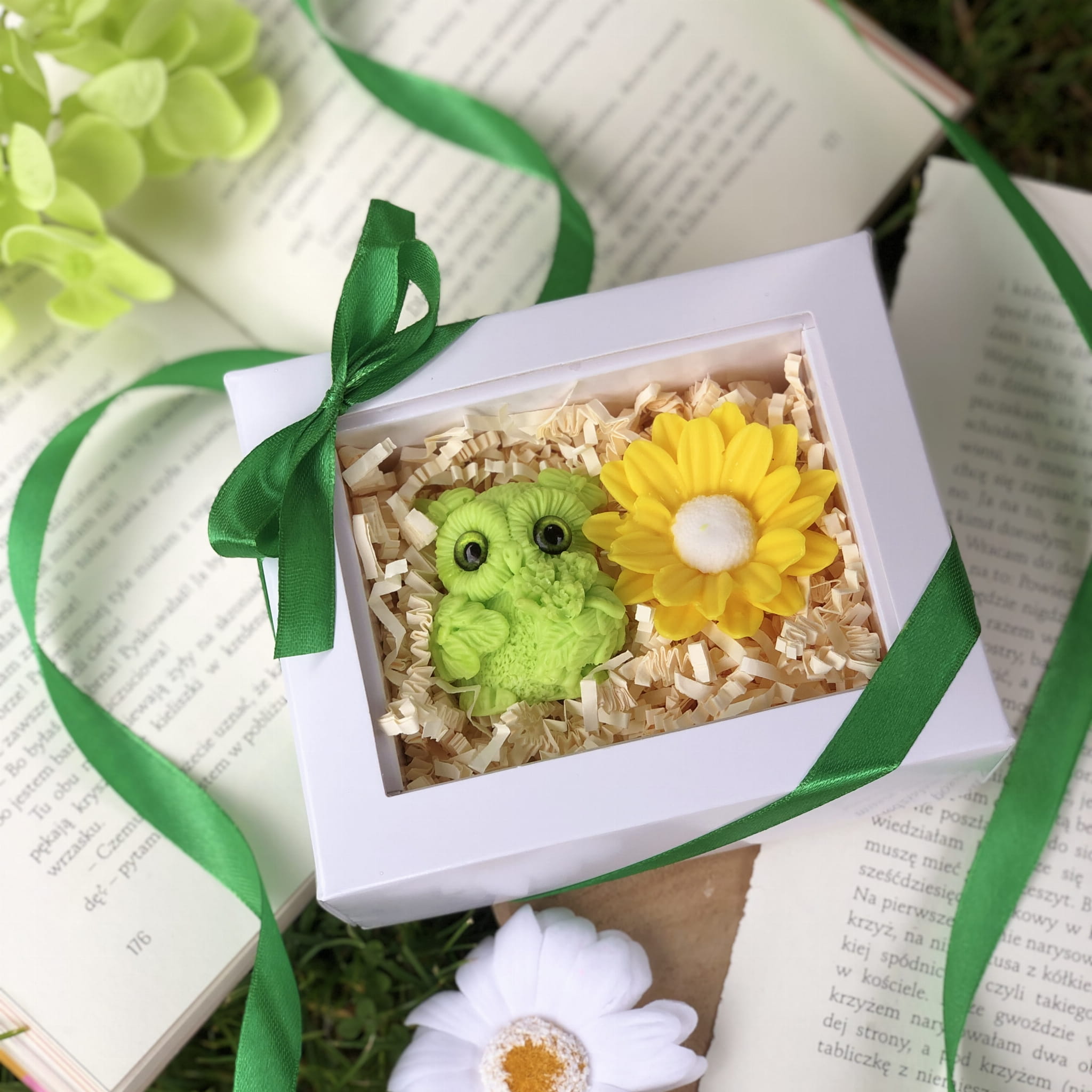 Całość zapakowana w eleganckie, białe pudełko z okienkiem i zieloną wstążką (12,5 x 10 cm) – gotowe, by wywołać uśmiech i wzruszenie od pierwszej chwili