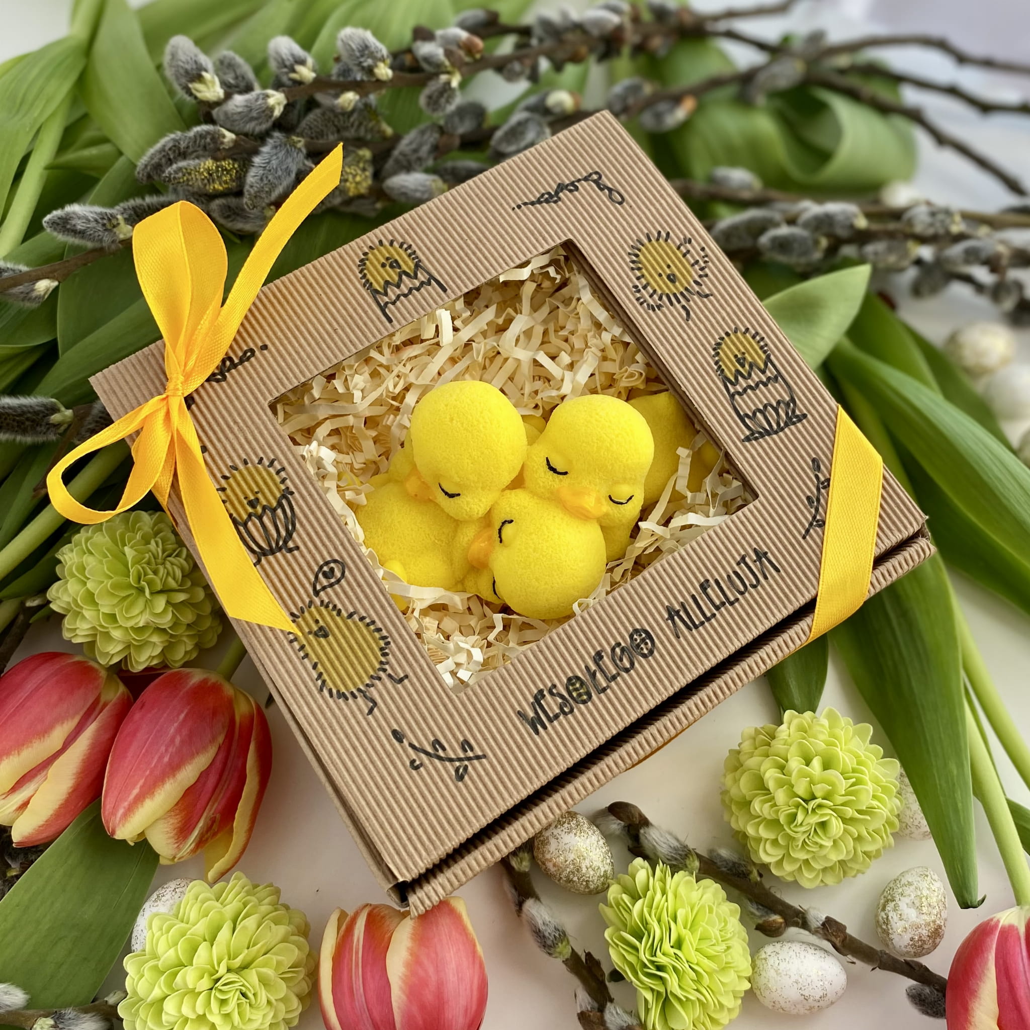 Ozdoba mydlana PISKLAKI ŚPIOSZKI jest wykonana ręcznie z pasją i dbałością o najmniejsze szczegóły. Pisklaki Śpioszki to urocza, mydlana gromadka, która rozczula swoim spokojem. Wyglądają, jakby właśnie śniły o wiosennych przygodach. Idealne na pełen czułości upominek!