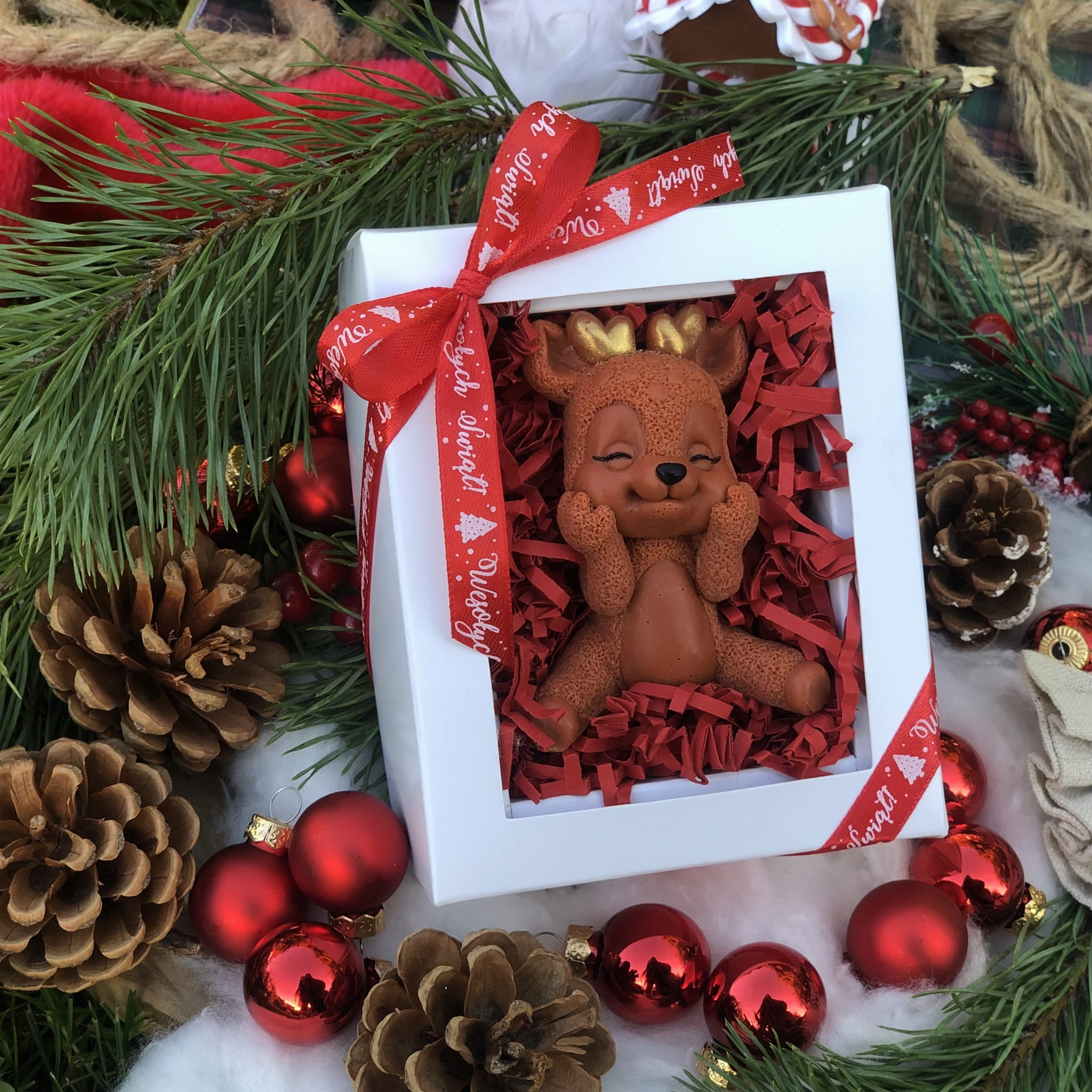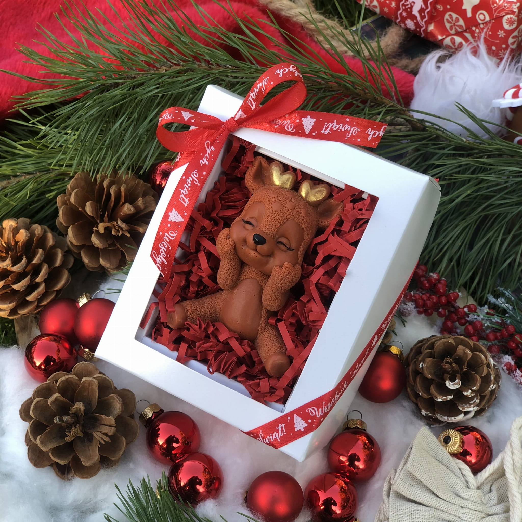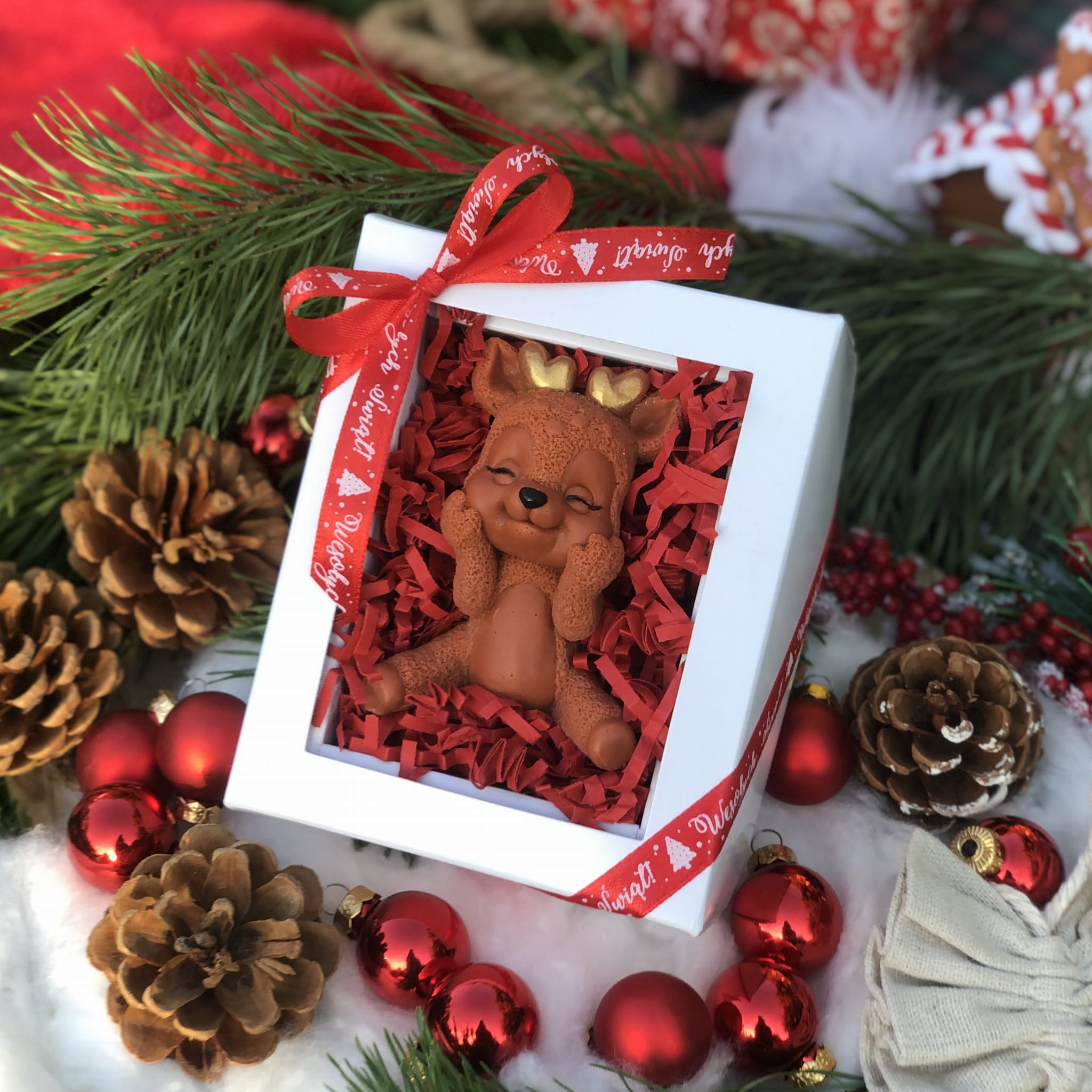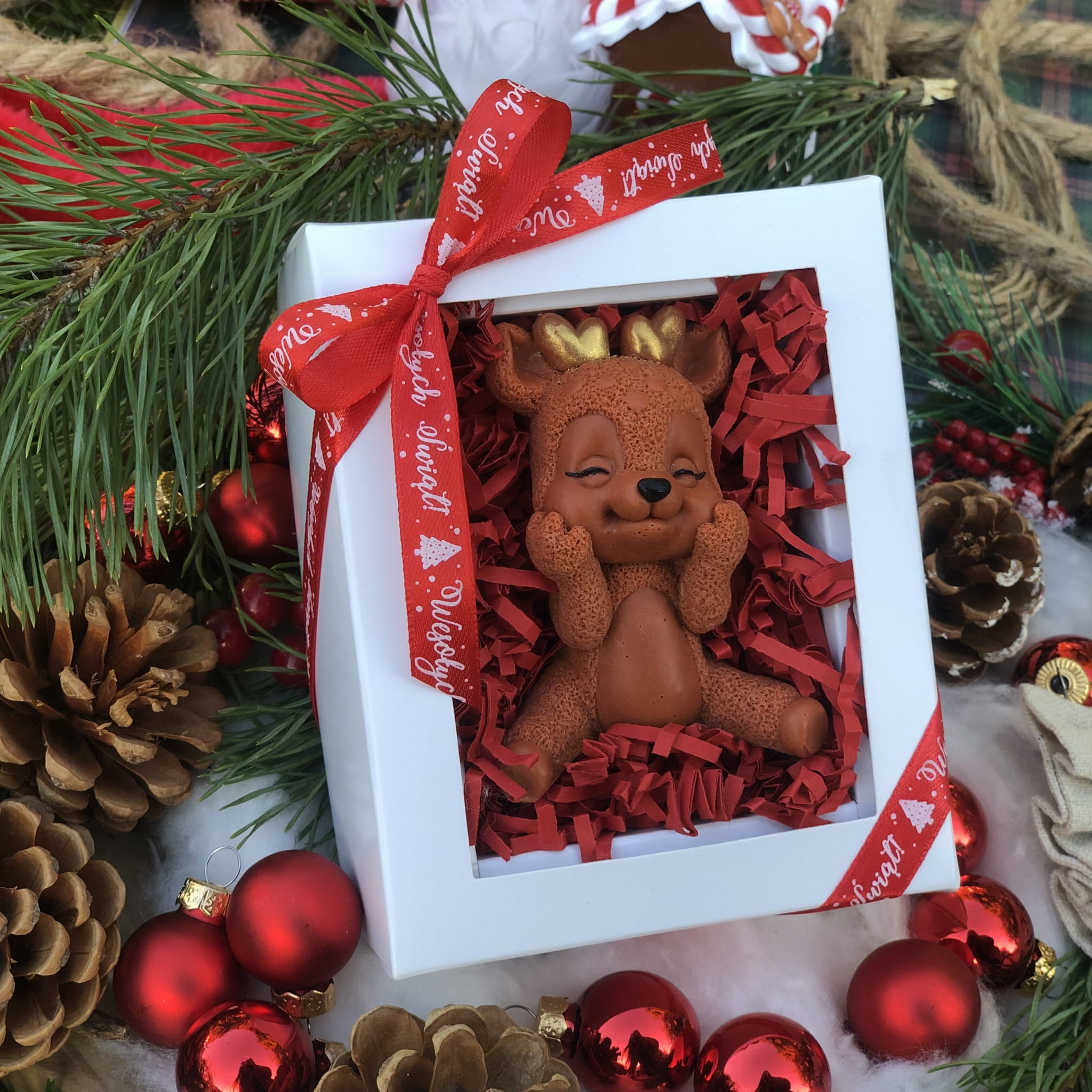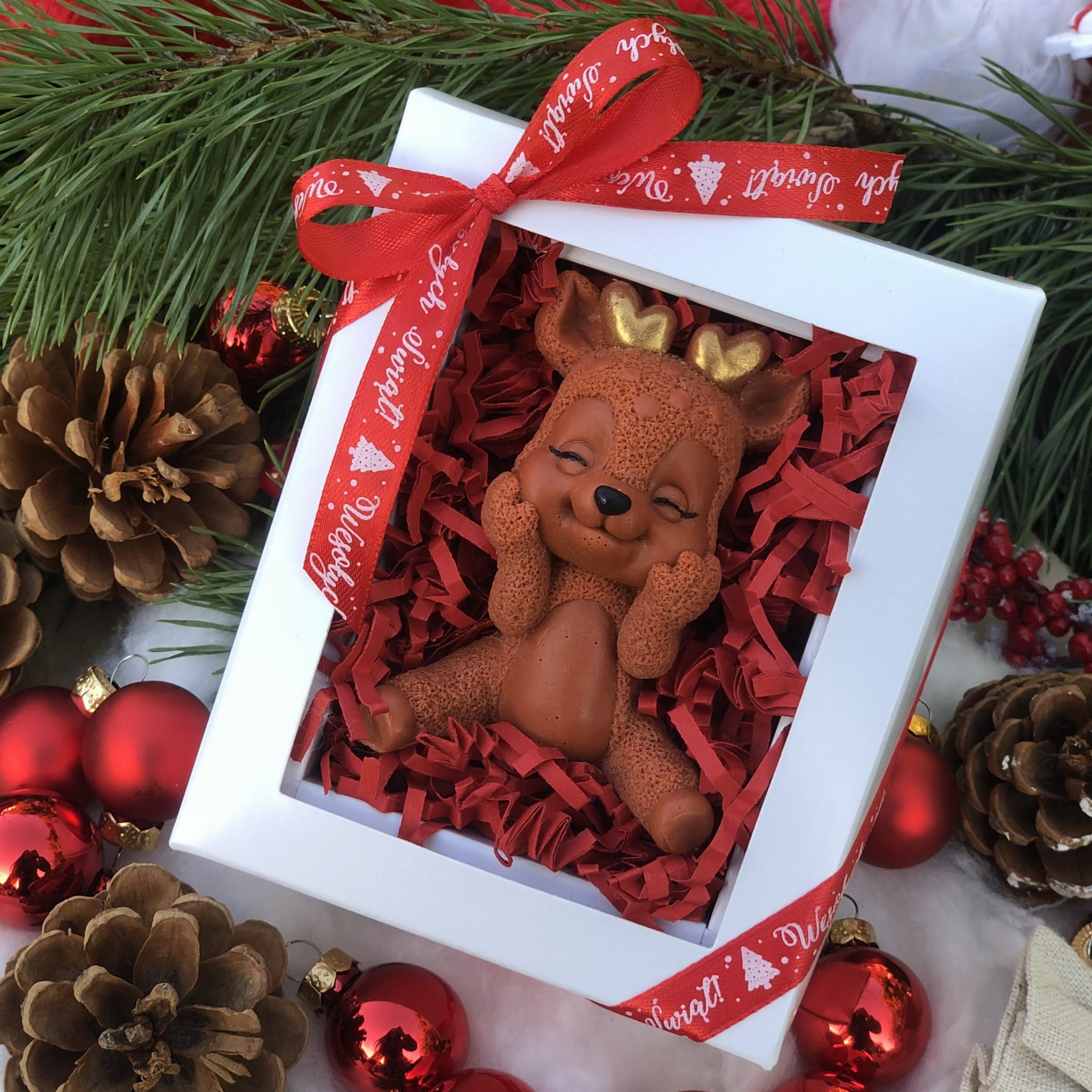 Ozdoba mydlana RENIFER BŁYSKOTEK jest wykonana ręcznie z pasją i dbałością o najmniejsze szczegóły. Możesz spersonalizować ją przez wybranie Twojego ulubionego zapachu i koloru!