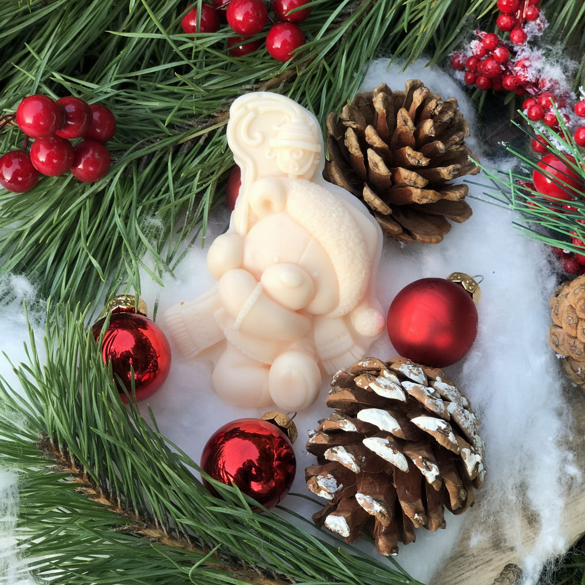 PAKIET 5 SZTUK Mydlana ozdoba ŚNIEŻNY MIŚ 2D jest wykonana ręcznie z pasją i dbałością o najmniejsze szczegóły.