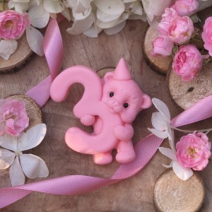 Ozdoba mydlana URODZINOWY MIŚ 3 jest wykonana ręcznie z pasją i dbałością o najmniejsze szczegóły. Możesz spersonalizować ją przez wybranie Twojego ulubionego zapachu i koloru!
