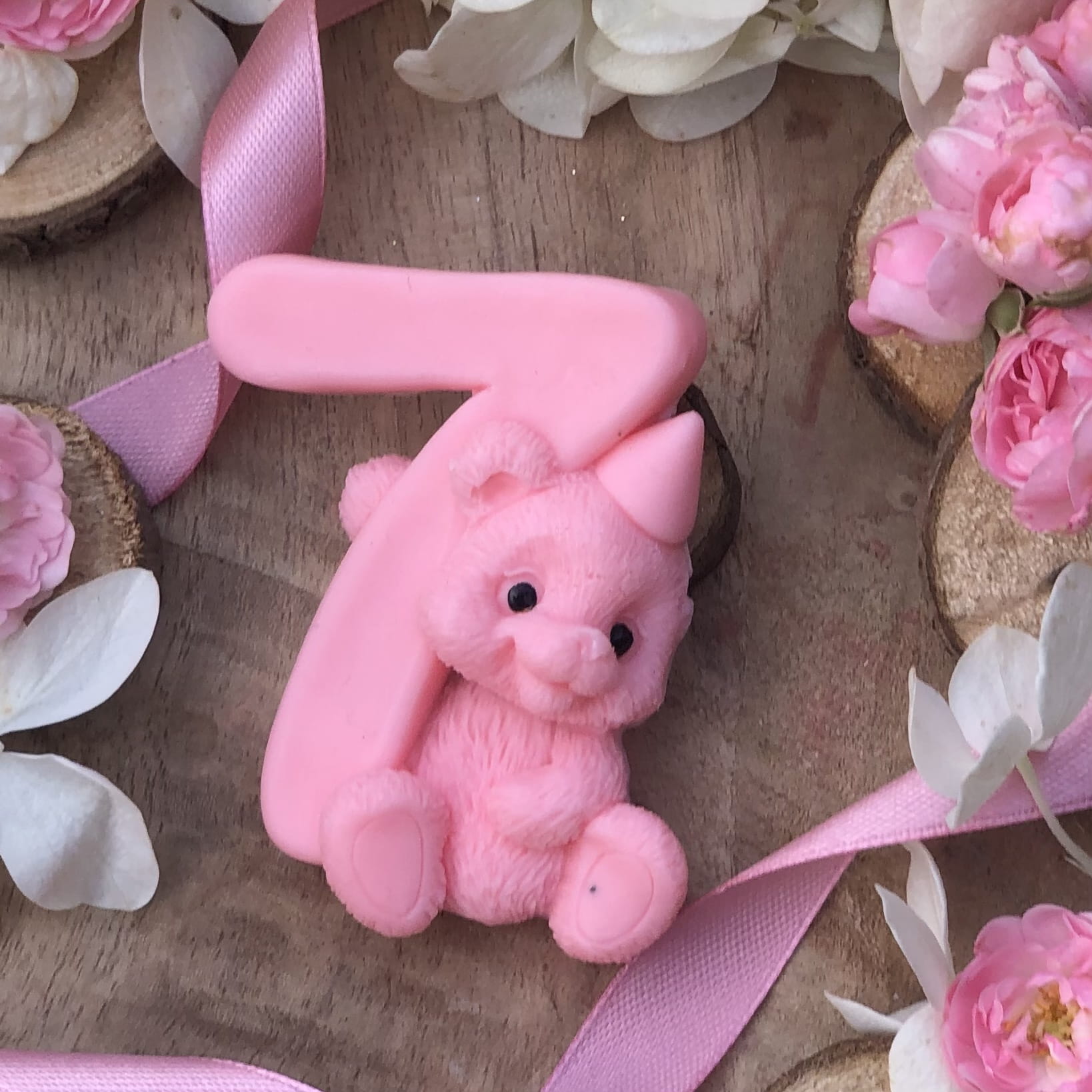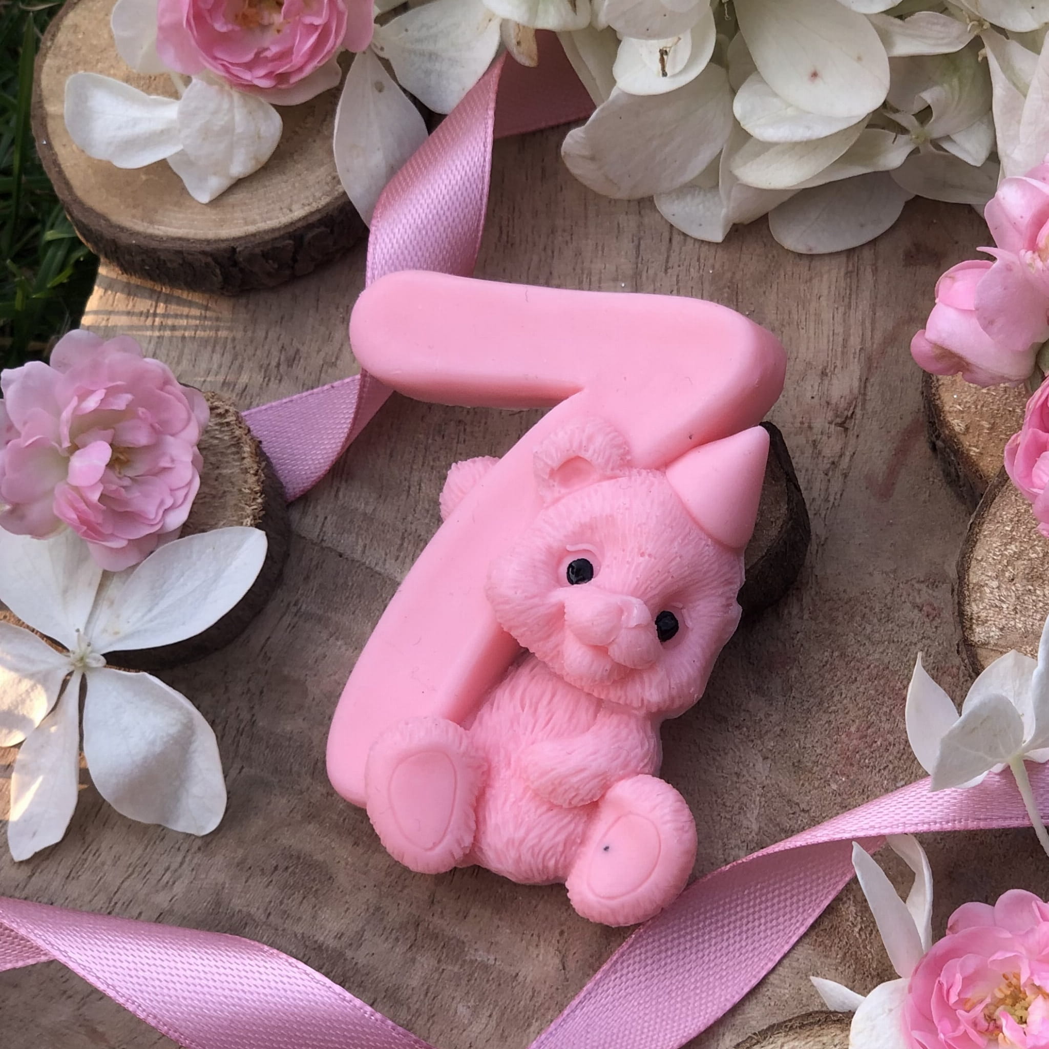 Ozdoba mydlana URODZINOWY MIŚ 7 jest wykonana ręcznie z pasją i dbałością o najmniejsze szczegóły. Możesz spersonalizować ją przez wybranie Twojego ulubionego zapachu i koloru!