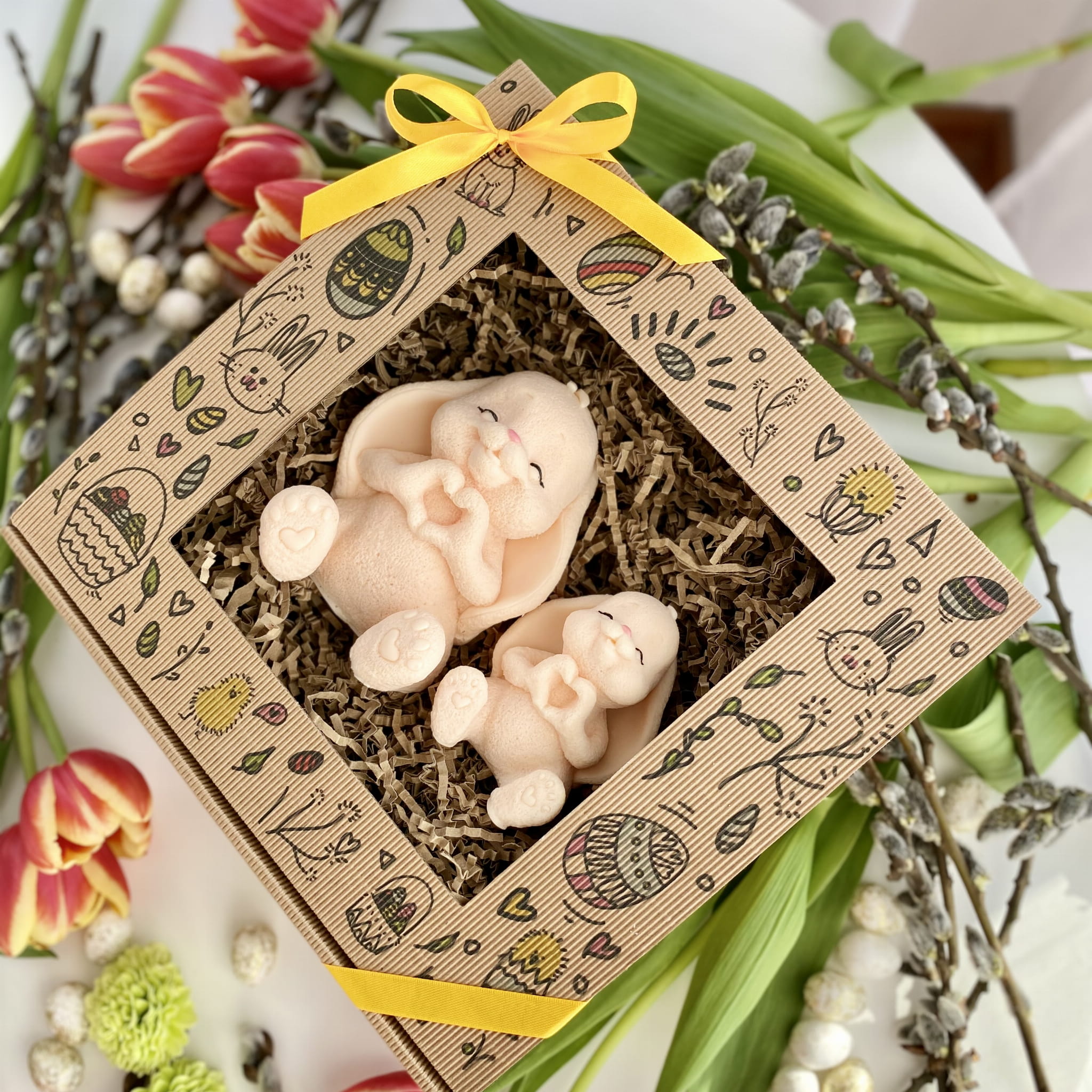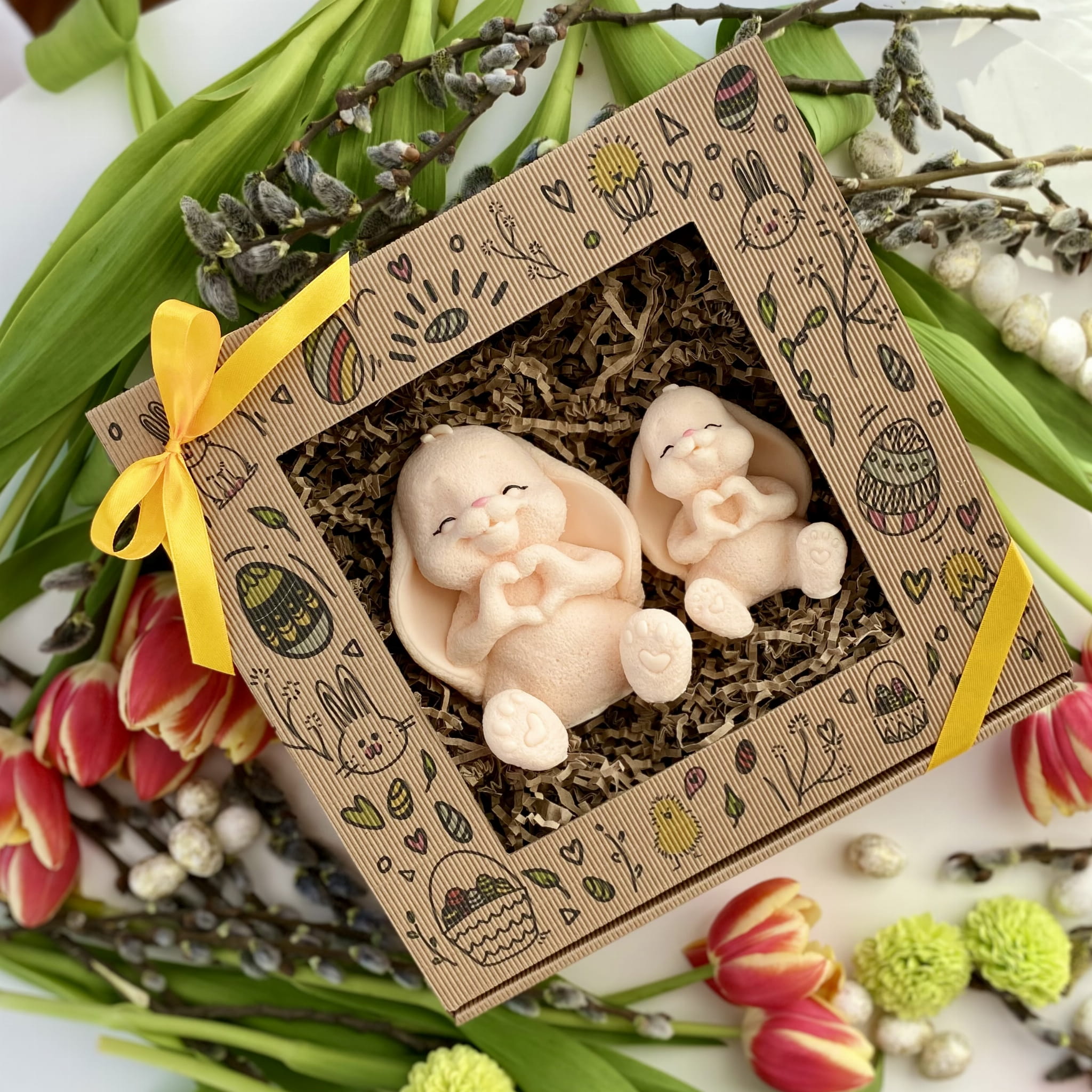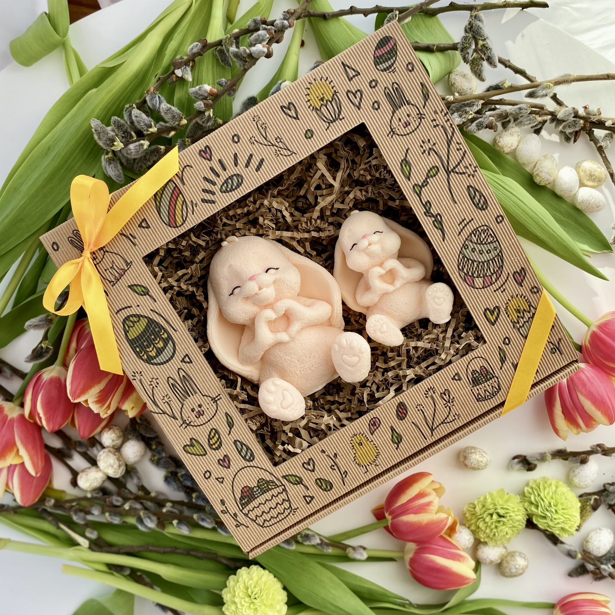 Mydlany Zajączkowy Duet Ecru to wyjątkowy zestaw dwóch uroczych zajączków, wykonanych z dbałością o każdy detal. Ich subtelny kształt, łapki ułożone w serduszko oraz delikatny zapach sprawiają, że to idealna dekoracja na wielkanocny stół, prezent lub dodatek do świątecznych aranżacji.