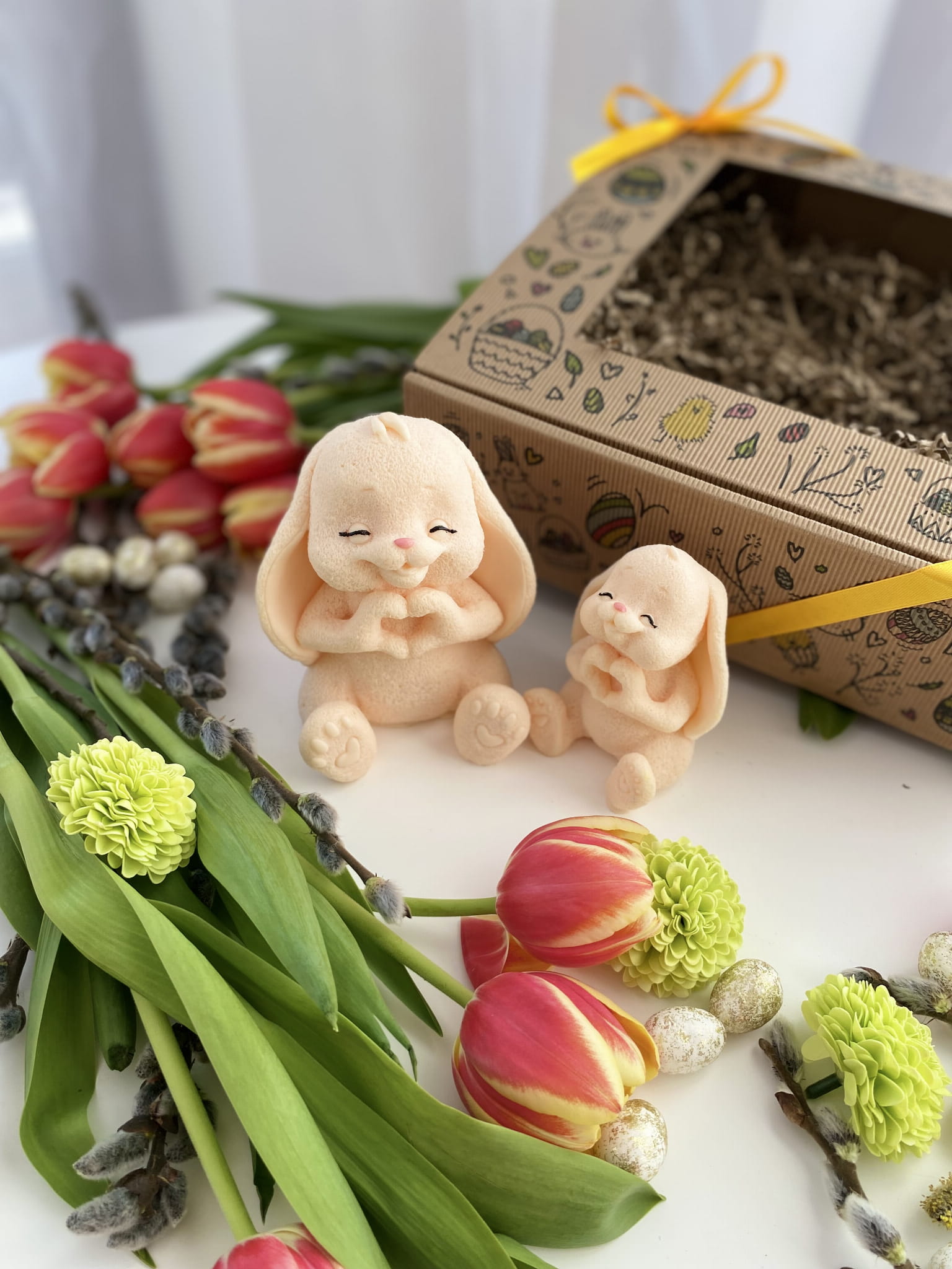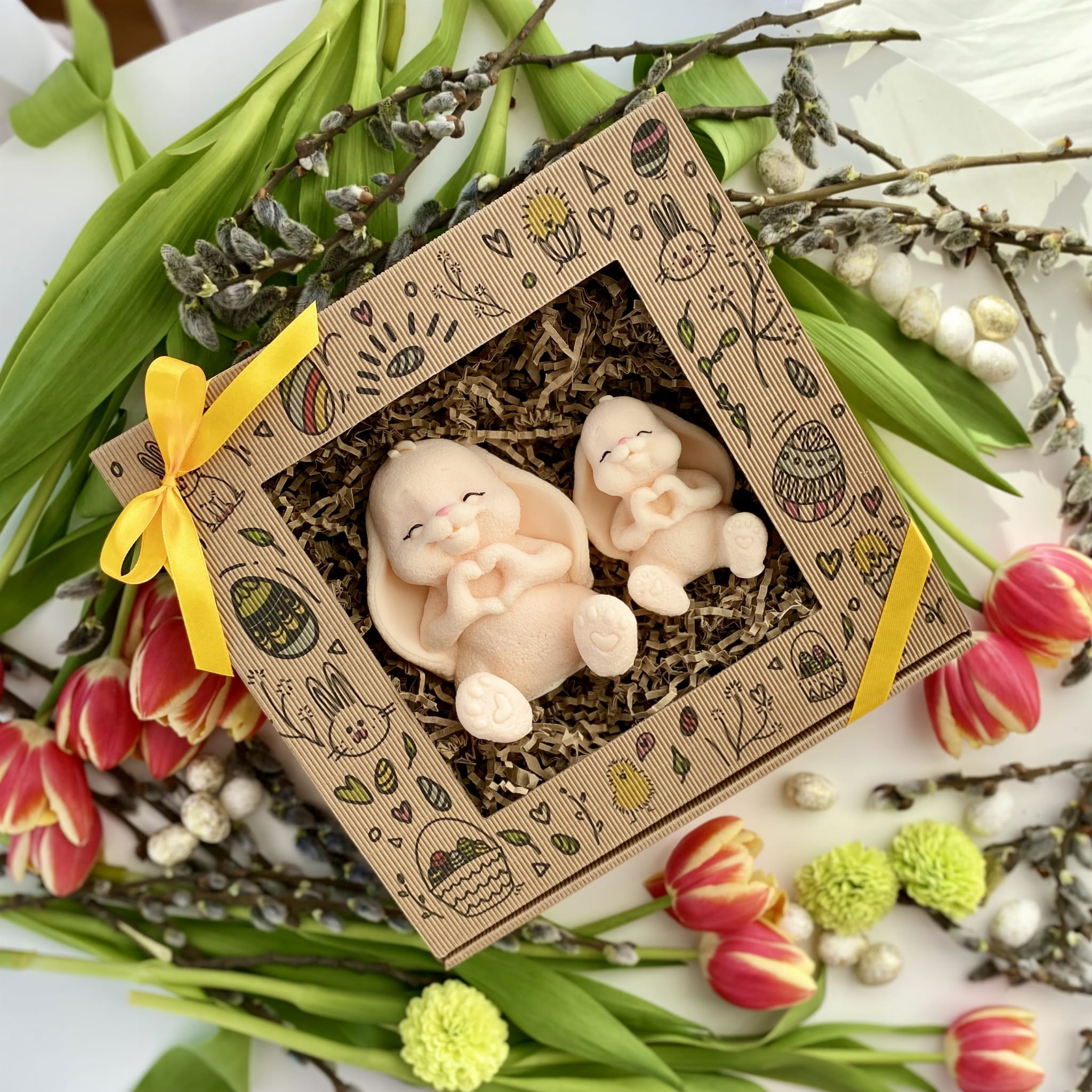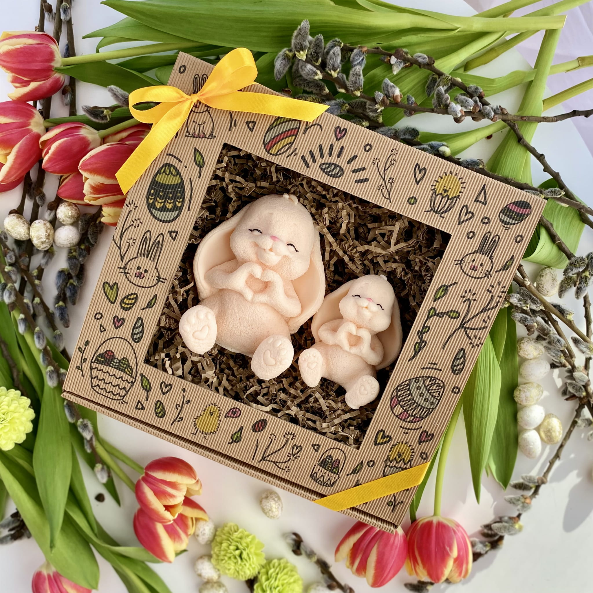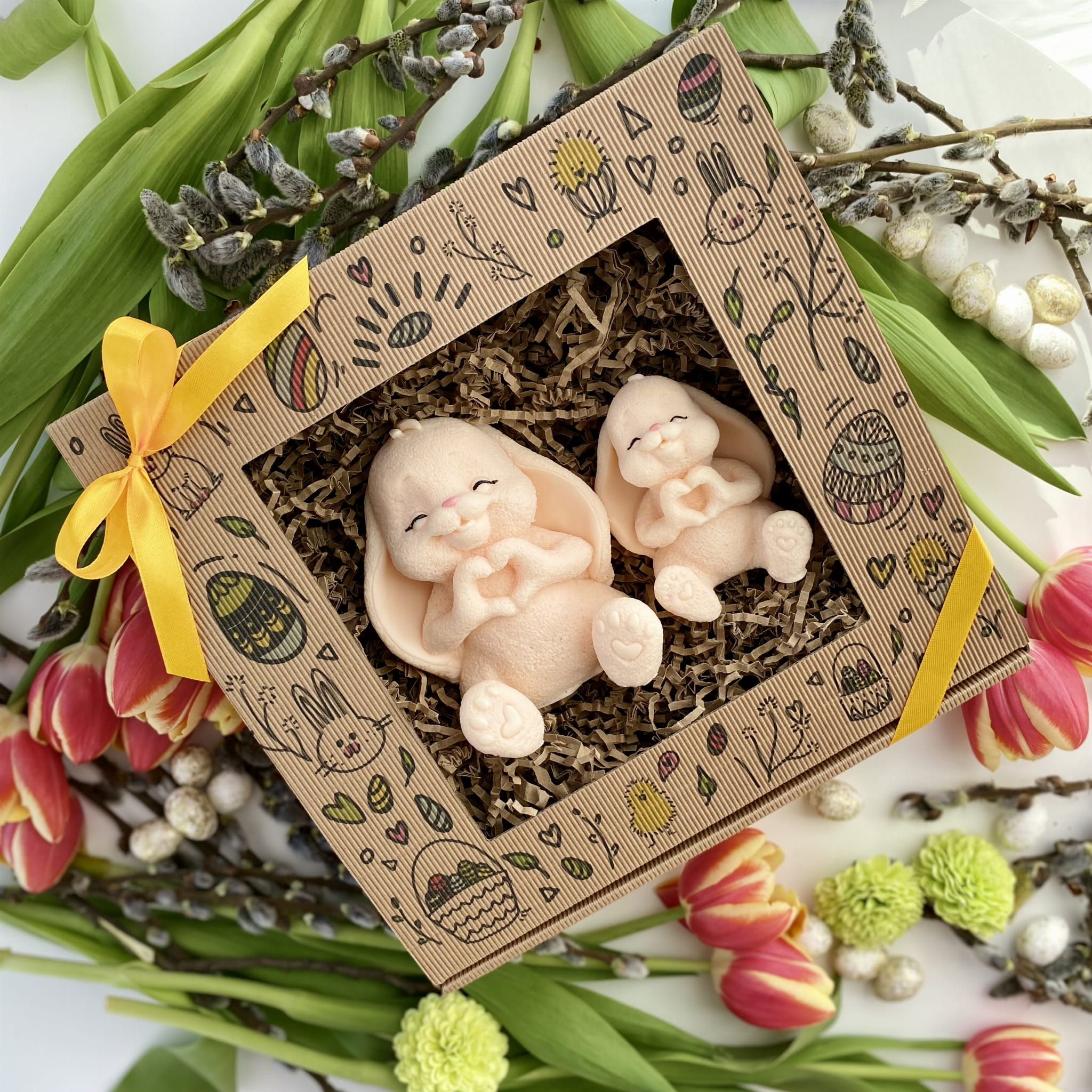 Mydlany Zajączkowy Duet Ecru to wyjątkowy zestaw dwóch uroczych zajączków, wykonanych z dbałością o każdy detal. Ich subtelny kształt, łapki ułożone w serduszko oraz delikatny zapach sprawiają, że to idealna dekoracja na wielkanocny stół, prezent lub dodatek do świątecznych aranżacji.