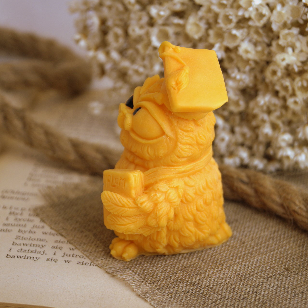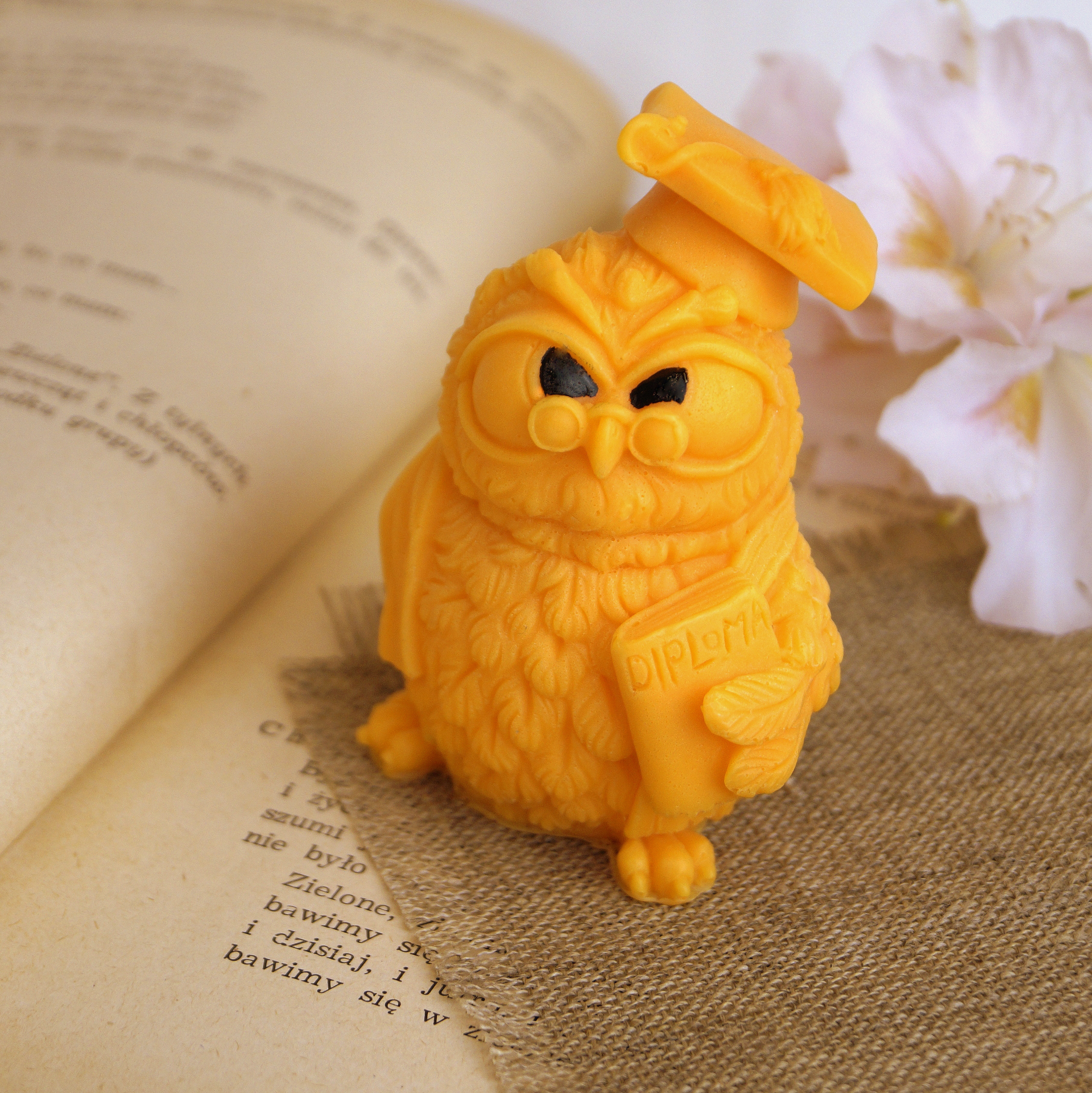 Ozdoba mydlana SOWA 1 to pełen charakteru symbol wiedzy i osiągnięć – dumna, skupiona, gotowa na nowe wyzwania! Jej biret, dyplom i stanowcze spojrzenie sprawiają, że nie da się przejść obok niej obojętnie. To upominek, który z humorem i klasą podkreśli wagę każdej edukacyjnej podróży – dla nauczyciela, wychowawcy lub promotora. Idealna na Dzień Nauczyciela!